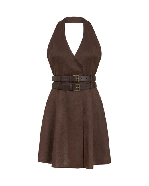 Women's Brown Double Belt Detailed Mini Dress