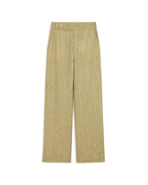 - Neutrals Linen Striped High-Waist Pants
