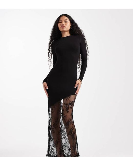 - Long Sleeve Maxi Dress With Lace Fishtail