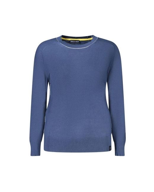 Elevate your wardrobe with North Sails exquisite long-sleeved jumper. A perfect amalgamation of style and comfort, this crew neck pullover is accentuated with bold contrasting details and the iconic North Sails logo. Its luxurious blend of cotton and viscose provides a soft touch and enduring quality that stands out. Crafted with precision, this blue statement piece promises to add a splash of sophistication to your chic ensemble. Ideal for the fashion-forward individual ready to sail through any occasion with grace and confidence. Colour: blue