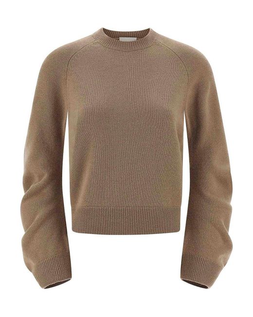 Virgin_wool crewneck jumper with long cuffed sleeves and a curved silhouette Colour: brown