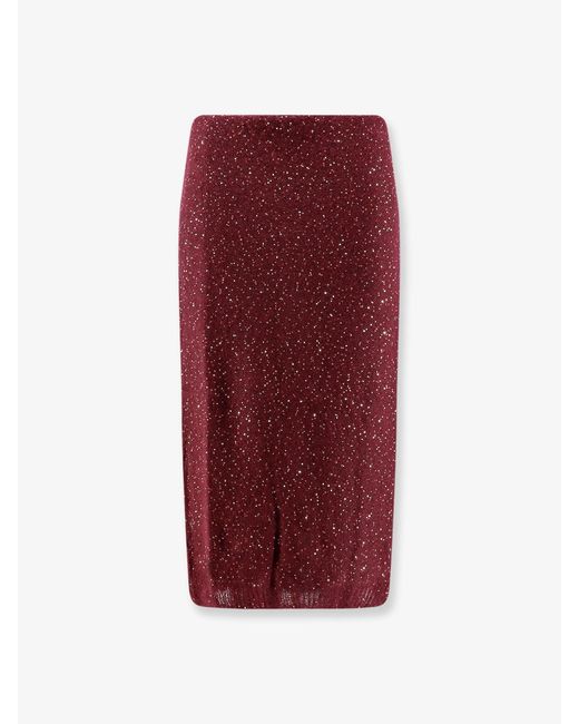 Elasticated Sequin-Embellished Midi Skirt - Red