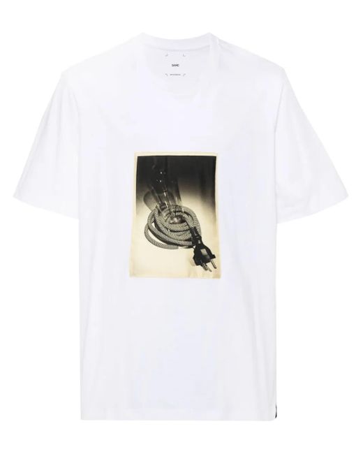 White cotton jersey texture graphic print to the front logo print to the rear crew neck short sleeves straight hem Size: S. Gender: Male. Material:Cotton/Cotton/Elastane/Silk. Colour: white