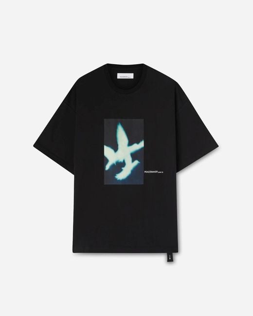 OAMC Peacemaker Dark Flower T-Shirt BlackOAMC Peacemaker explores functional design through a military lens, merging utilitarian practicality with refined aesthetics. The Dark Flower T-Shirt arrives in soft cotton with an oversized fit, featuring a ribbed collar and printed branding at front and back. * 100% Cotton * Oversized Fit * Ribbed Collar * Printed Branding at Front and Back * Style Code: PCM1OT02FJE002099 BLK Colour: black