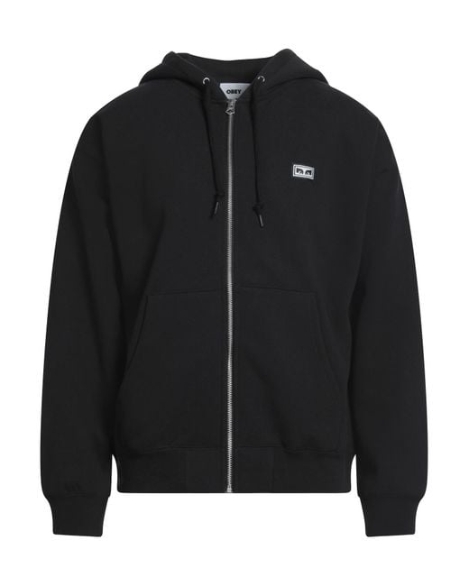 OBEY. fleece, plain colour, brand logo, hooded, long sleeves, zip fastening, patch pockets, machine wash, do not bleach, tumble dry. 58% Cotton, 42% Polyester. Colour: black