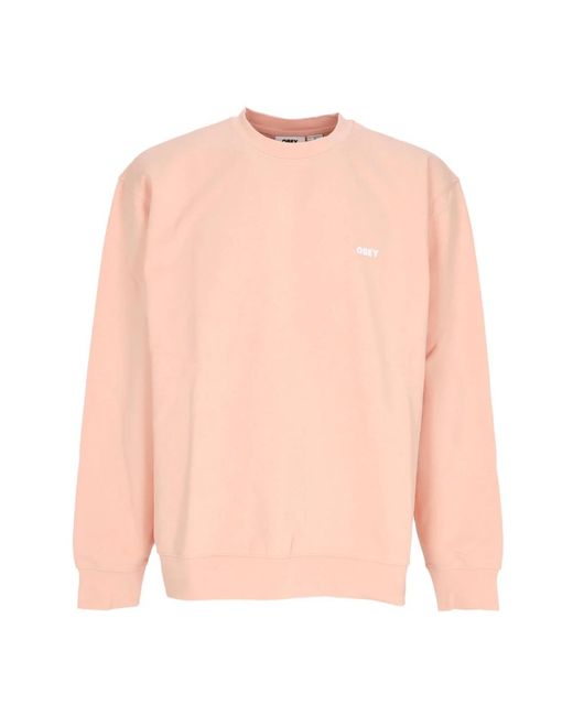 Stay comfortable and stylish in this Obey crewneck sweatshirt for men. Featuring a light long-sleeved tracksuit design with a regular fit, it showcases the Obey logo on the left side and back. Made of 80% Cotton and 20% Polyester. Care instructions: Hand or machine wash as per label. Model is 180 cm tall and wears size M. Colour: pink