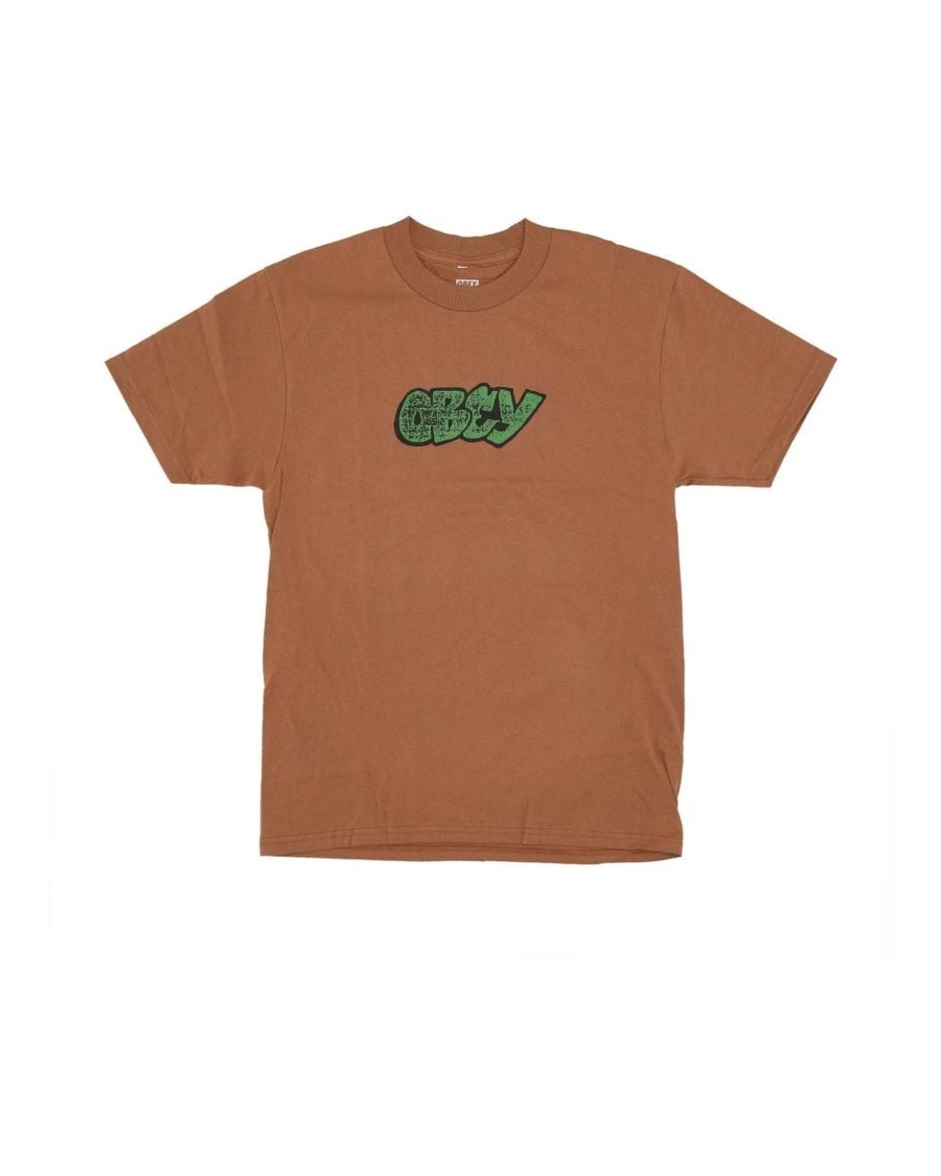 Upgrade your casual wardrobe with this Obey Short Sleeve Crew Neck T-shirt for men. Featuring a regular fit, this 100% Cotton tee showcases the iconic Obey logo on the front and a stylish silk-screen print on the back. Easy to care for, simply follow the washing instructions on the label for long-lasting wear. Colour: brown