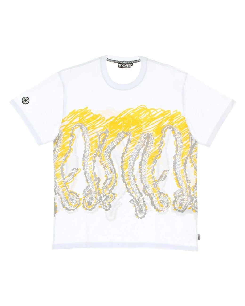 Elevate your casual style with this Octopus Short Sleeve Crew Neck T-Shirt. Featuring a regular fit, this 100% Cotton tee showcases the Octopus logo on a rubber patch sewn on the right sleeve and label sewn on the left side. The Octopus print on the front and back adds a unique touch. Care instructions: Hand or machine wash as per label. Colour: yellow