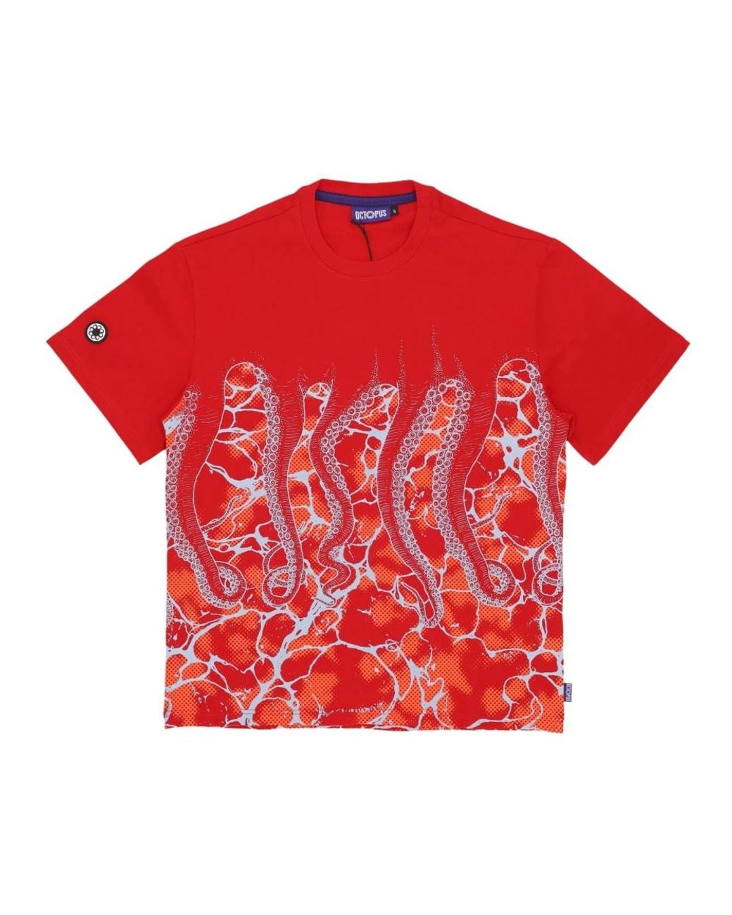 Elevate your casual style with this Octopus Short Sleeve Crew Neck T-shirt. Featuring a regular fit and Octopus logo on a rubberized patch sewn on the right sleeve, this tee also boasts an embroidered label on the bottom. The all-over print of Octopus tentacles adds a unique touch. Made from 100% cotton, this tee is both hand and machine washable for easy care. Colour: red