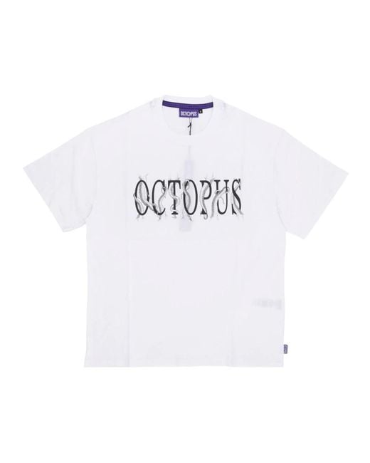 Stay stylish and comfortable in this Octopus short sleeve choke t-shirt for men. Featuring a soft fit, Octopus logo embroidered on the flag label sewn on the side, and screen printing on the front. Made of 100% cotton, this t-shirt is hand washable or machine washable (please read the label). Colour: white