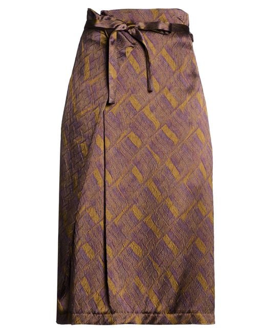 ODEEH. flared skirt, satin, jacquard, two-tone, belt, wrap-effect, belt loops, regular fit, zip fastening, slit pockets, dry clean, do not bleach, do not tumble dry. 97% Viscose, 3% Polyester.