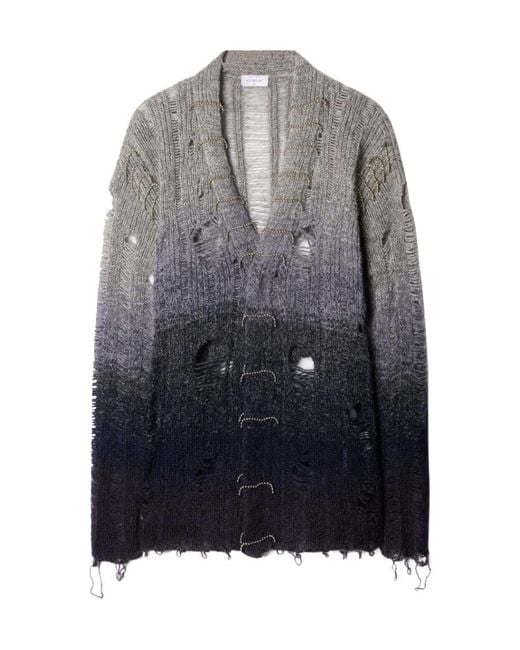 Men's Grey Distressed Knitted Cardigan