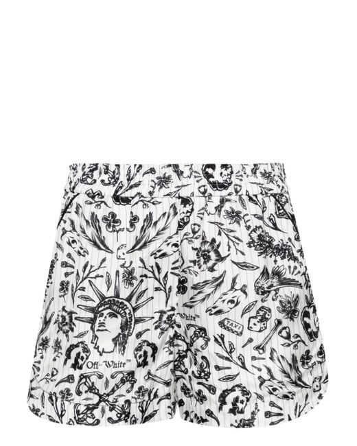 Women's White Tattoo Graphic-Print Pyjama Shorts