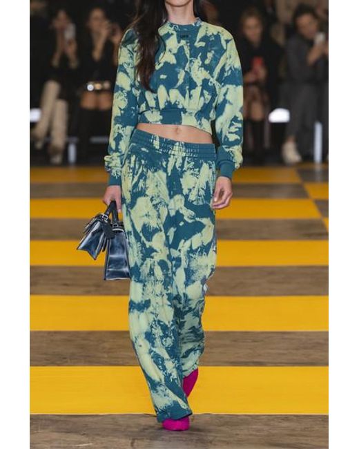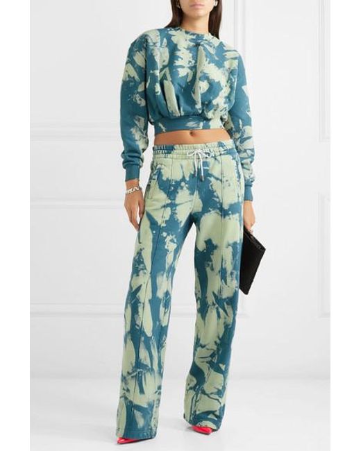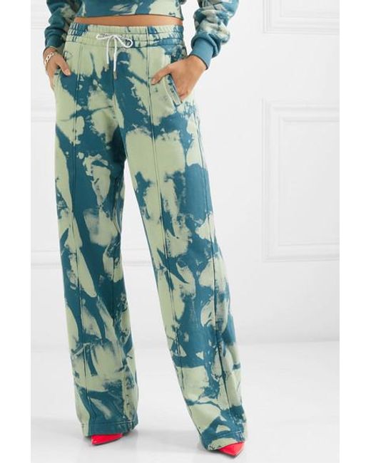 Virgil Abloh was thinking about the crash derby race car culture from his youth for Off-White's Fall '19 collection. These joggers are tie-dyed to resemble a gasoline spill. Cut from cotton-jersey, they have an adjustable drawstring waistband and centre seams to define the relaxed straight legs. Wear them with the matching sweatshirt and neon court shoes, as seen on the checkered-flag runway. Colour: blue