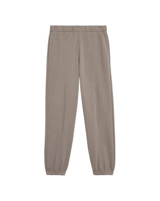 Grey elasticated drawstring waist two side slit pockets rear welt pocket elasticated ankles Size: L. Gender: Male. Material:Organic Cotton/Polyester/Recycled Polyester.