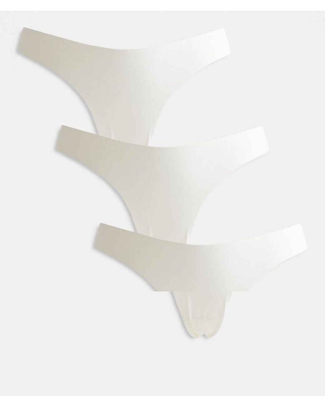 3 Pack Ribbed Seamless Lingerie Thong - White