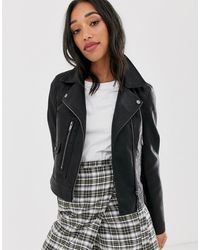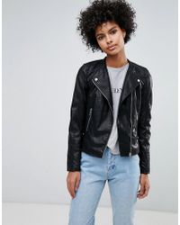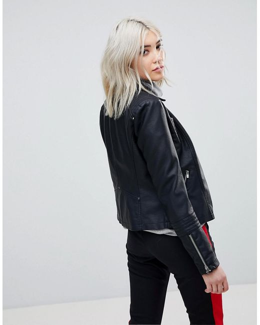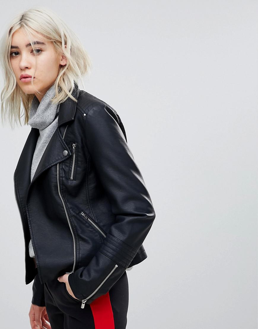 Biker jacket by Only, The search for your next trophy jacket is over, Contrast silky-feel lining, Studded lapels, Asymmetric zip fastening, Zipped cuffs, Functional pockets, Regular fit, True to size. Let's be honest, we all love a bit of Scandi style. That's why we've put together an edit of Danish high-street brand Only's freshest pieces, including classic denim cuts, oversized shirts and wide-leg jumpsuits. We're crushing on its striped co-ords and wrap dresses for our daytime vibe. Denim/ leather/ polyester/ silk/ viscose. Colour: black