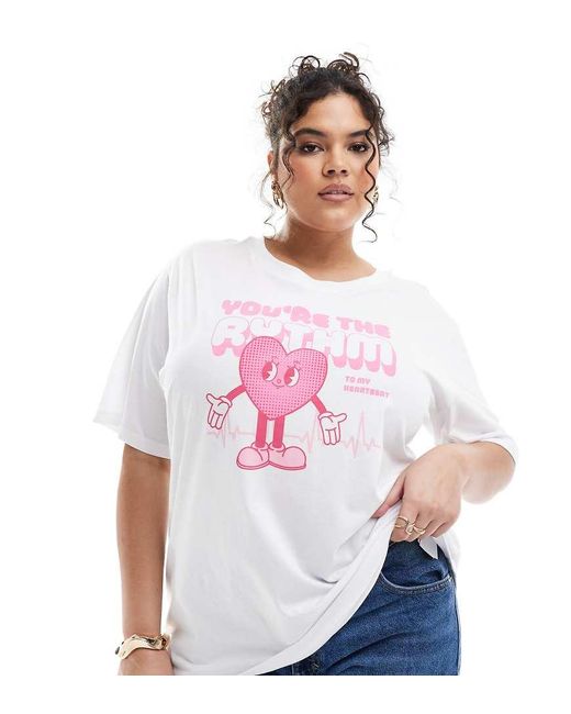 Women's White Oversized T-shirt With Heart Graphic