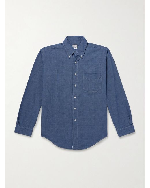- Button-Down Collar Checked Cotton-Chambray Shirt