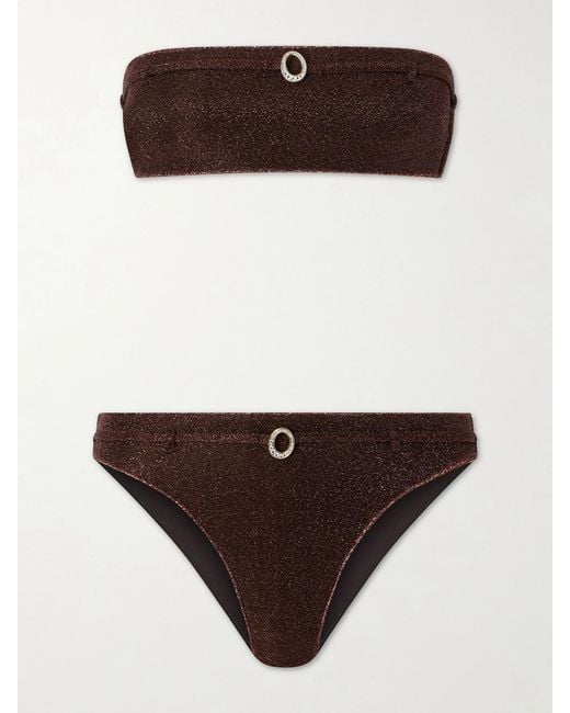 - Lumière Micro Belt Bandeau Embellished Stretch-Lurex Bikini