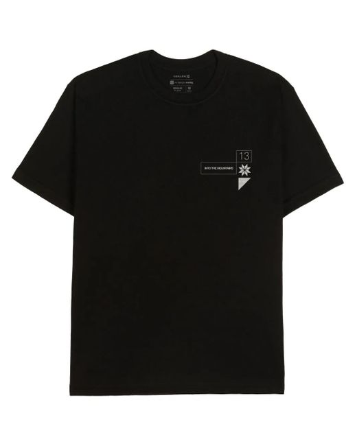 Black crew neck logo print at the chest short sleeves straight hem Size: P. Gender: Male. Material:Certified Cotton/Recycled Polyester. Colour: black