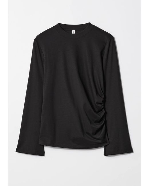 Women's Black Ruched Long-Sleeve Top