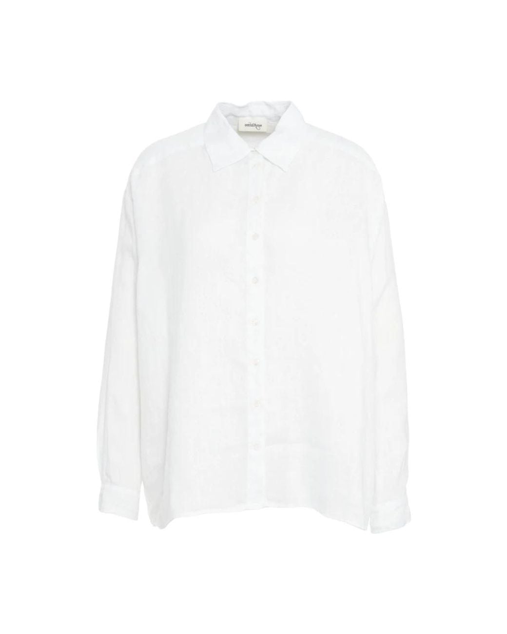 Elevate your wardrobe with this Ottod'Ame linen blouse. Featuring a rounded hem, button closure, and kent collar with long sleeves and button cuffs, this semi-transparent blouse offers a relaxed fit perfect for both casual and dressy occasions. Model height: 178 cm; Size: 42. Gentle wash at 30°C. Fabric: 100% LI.