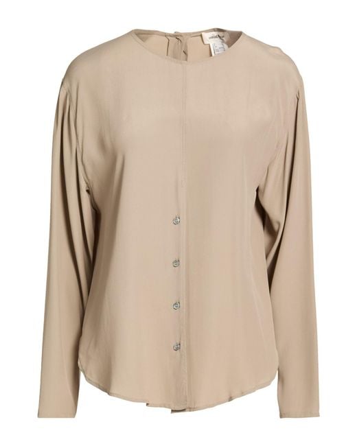 OTTOD'AME. shirt, crepe, plain colour, brand logo, crewneck, long sleeves, button fastenings, hand wash or dry clean, do not bleach, do not tumble dry. 70% Acetate, 30% Silk.