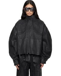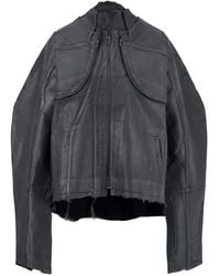 Go to SSENSECoated stretch denim top. · Fading and frayed edges throughout · Stand collar · Zip closure · Flap pockets at chest · Pleat at back · Contrast stitching in tan Supplier color: Blue Colour: blue