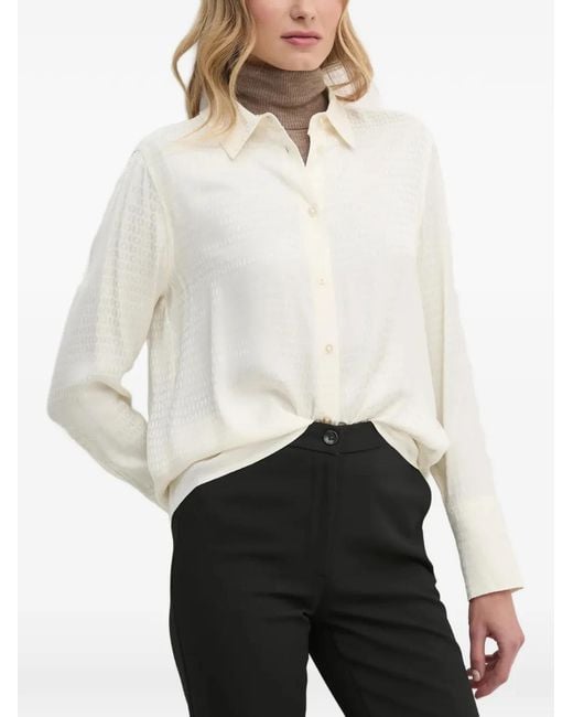 White patterned button fastening point collar long sleeves buttoned cuffs Size: 38. Gender: Female. Material:Viscose. Colour: white