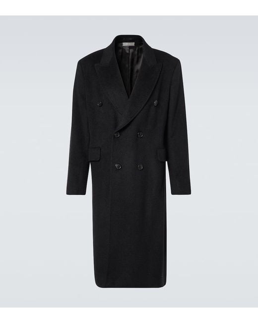 Men's Black Whale Double-Breasted Mohair-Blend Coat