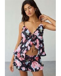 Go to Urban OutfittersThe prettiest pyjama set by Out From Under with a whimsical pattern and delicate ruffles. Split-front cami and mini shorts set, perfect for adding a touch of elegance to your bedtime routine. UO exclusive. Colour: brown