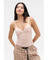 Go to Urban OutfittersThe cutest cami by Out From Under. Cut from a flocked fabrication complete with a deep V-neck, soft cups, a slim fit and a cropped hem. Only at UO. Colour: red