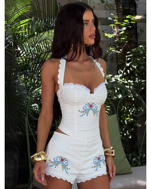 Meet our Broik Shorts in White, a tailored mini designed to pair perfectly with the matching top. Crafted from cotton poplin with delicate embroidery, she features a structured yet flattering fit with soft scalloped edging for a feminine finish. Easy to style and effortlessly polished, she's your go-to for elevated summer dressing. Colour: green