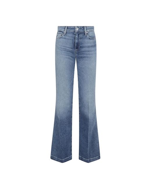 Paige Flared Jeans combine a classic flared-leg silhouette with stretch for comfortable, everyday wear. Ideal for pairing with boots or heels, they offer timeless five-pocket styling and an iconic leather patch detail. Key attributes: Blue | Cotton blend | Stretch fabric | Five-pocket design | Belt loops | Button and zip closure | Flared leg | Iconic leather patch | Dimensions & fit: Hem width: 29 cm | Flared fit | Composition & care: 93% cotton | 5% polyester | 2% spandex | Machine wash cold, tumble dry low. Colour: blue