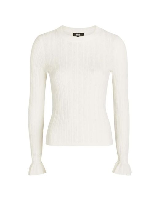 Beige knitted ruffled cuffs round neck long sleeves Size: XS. Gender: Female. Material:Cotton/Recycled Nylon/Silk. Colour: white