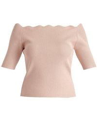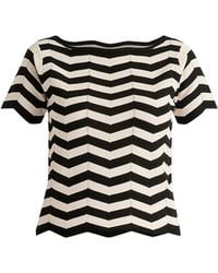 Go to Wolf & BadgerThis contrasting zigzag-patterned knitted top is crafted from a viscose blend. Featuring a boat neck design, the zigzag edging finishes the sleeves and hem. It’s lightweight and breathable, combining style and comfort. 55%