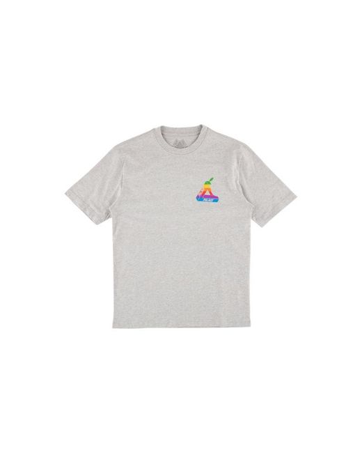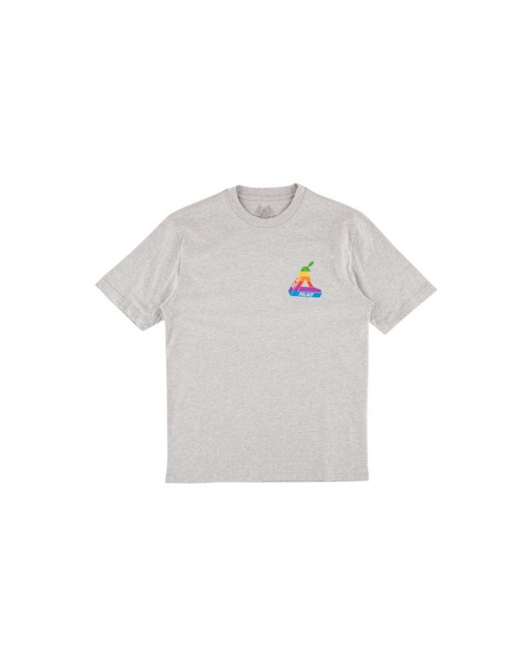 The Palace Jobsworth T-shirt recognizes tech giant Apple with apparel that bears the brand's rainbow-colored logo. This grey cotton tee features a multicolored Tri-Ferg on the chest with a bite taken out of it. A larger version of the logo is on the back, as well. The Jobsworth T-shirt launched in several colors, as did a hooded sweatshirt. Sales of these styles were cut short when Palace mysteriously removed them from its website, making this hard-to-come piece a collector's item. Cotton.