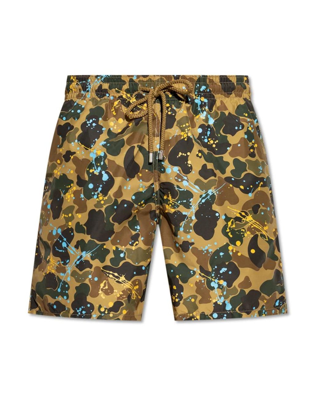 THE ART of bold expression meets the finesse of prestige in the Palm Angels X Vilebrequin swim shorts collection. This unique model captivates with its classic, slightly loose fit that harmoniously accentuates the silhouette and ensures exceptional comfort during summer days. The multicoloured Camouflage Pattern is enriched with artistic paint splatters in shades of blue and yellow, transforming each piece into a one-of-a-kind work of art. The quick-drying, matte fabric impresses not only with its noble character but also with practicality—it is lightweight and highly resistant to moisture. The elastic waistband with a tunnel drawstring and a khaki-colored cord guarantees a perfect fit, while three POCKETS—two side and one back pocket with a Velcro flap—add practical functionality. The collaboration between these two fashion houses perfectly highlights the Unique Character OF THE Product. WHY Should YOU BUY This Product? * Exceptional design combining streetwear and luxury * High-quality, quick-drying fabric * Perfect cut and superior wearing comfort * Limited-edition collection of two prestigious brands * Practical construction solutions Model`s Measurements Height: 185cm Chest: 92cm Waist: 74cm Hips: 91cm Model is wearing size: L Colour: yellow