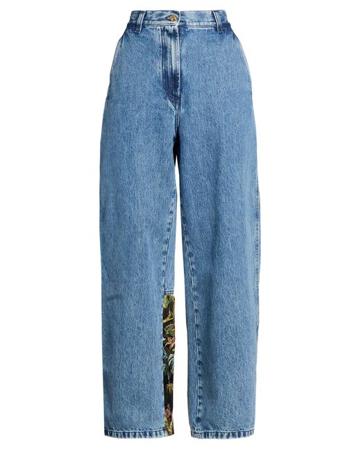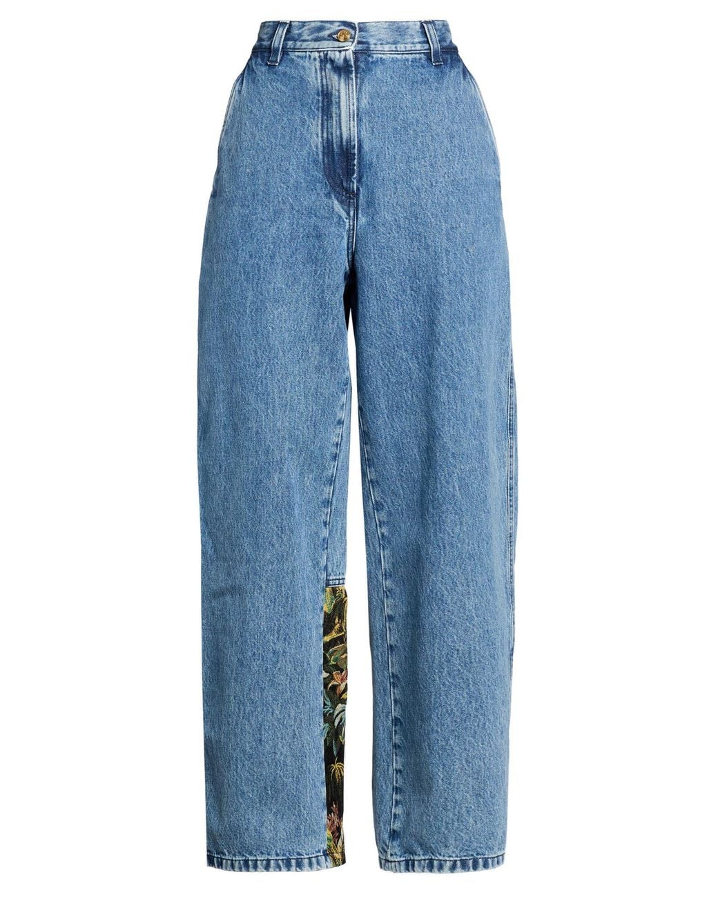 PALM ANGELS. wide-leg jeans, denim, floral-print, brand logo, medium wash, high waisted, belt loops, regular fit, zip fastening, button fastenings, slit pockets, patch pockets, machine wash, do not bleach, do not tumble dry. 100% Cotton, Polyester.