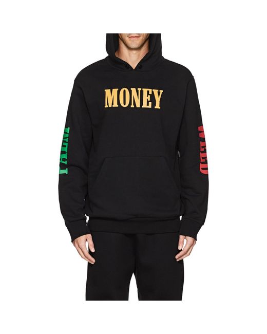 Palm Angels' hoodie is printed at the front with yellow Money lettering and at the sleeves with red and green lettering. Kangaroo pocket. Long sleeves. Rib-knit cuffs and bottom band. Pulls over. Dry clean. Imported. This item was pre-shot and written as a sample and may be subject to changes in production, including fabrication and other construction details. Palm Angels Men's Money Hoodie - Black Size S A great designer gift. Stay on top of Spring trends and shop Palm Angels at Barneys Warehouse. Colour: black