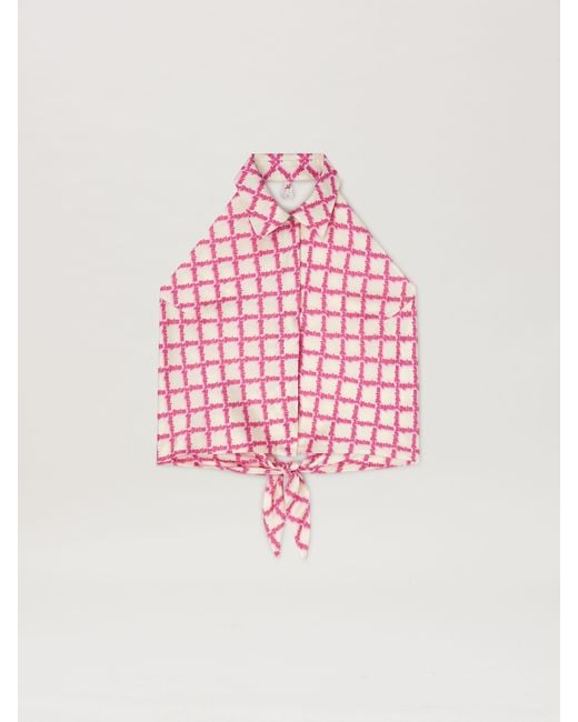 Women's Pink Net Logo Open Back Shirt Ivory