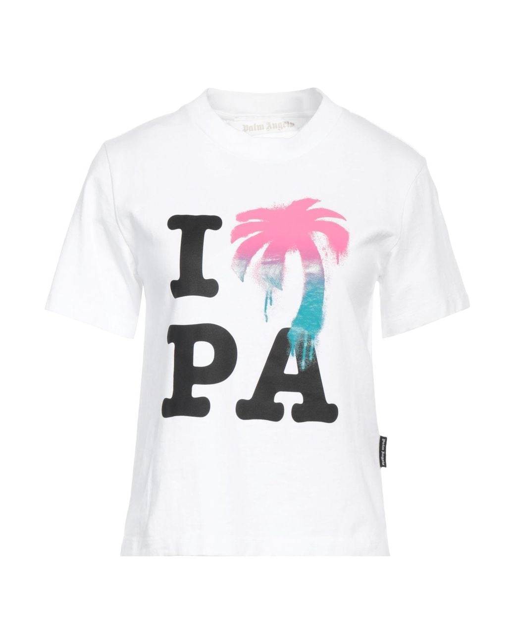 PALM ANGELS. printed t-shirt, jersey, plain colour with print, brand logo, crewneck, short sleeves. 100% Cotton, Polyester.
