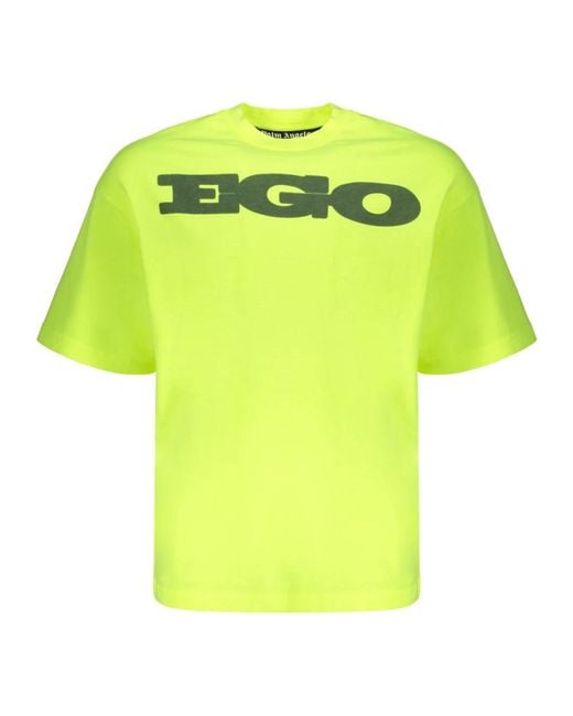 Elevate your casual style with this Palm Angels T-shirt featuring a ribbed neckline and a striking front print. Crafted from a blend of polyester and cotton, it offers a comfortable fit for everyday wear. Key attributes: Green | polyester | cotton | ribbed neckline | front print | Dimensions & fit: comfortable fit | Composition & care: 100% polyester | 100% cotton Colour: yellow