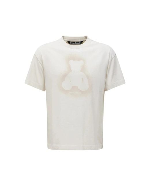 Palm Angels T-shirt in a white cotton construction, finished with a chest graphic print for casual, everyday wear. Key attributes: White | Neutrals | Cotton | Crew neck | Short sleeves | Graphic print at chest | Composition & care: Cotton Colour: white