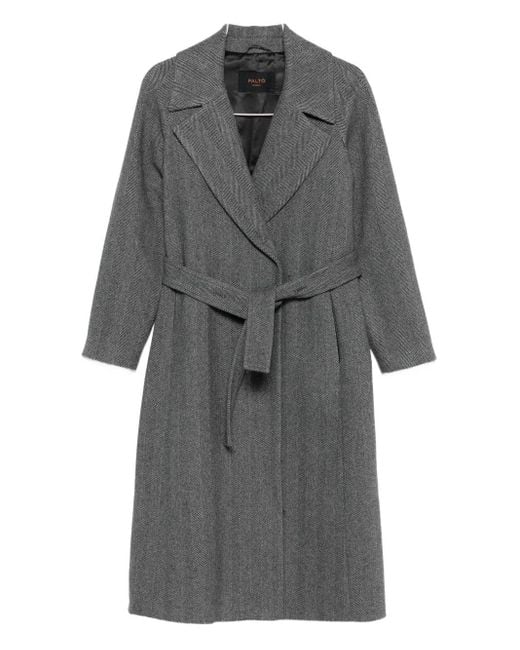 Grey herringbone weave belted waist notched lapel long sleeves concealed fastening Paola wool coat Size - Colour: grey