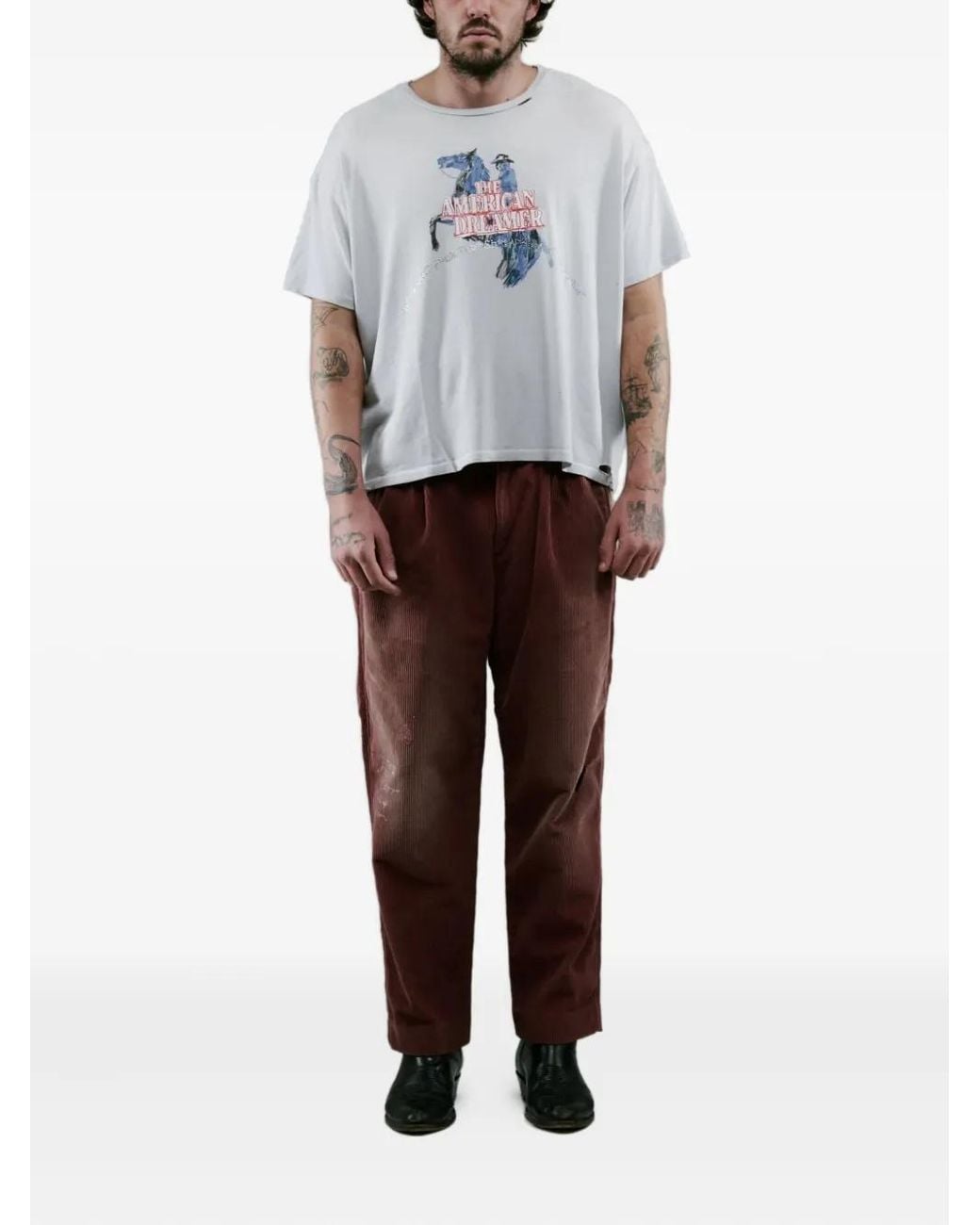 Burgundy corduroy texture embroidery zip detail back pocket belt loops Colour: white