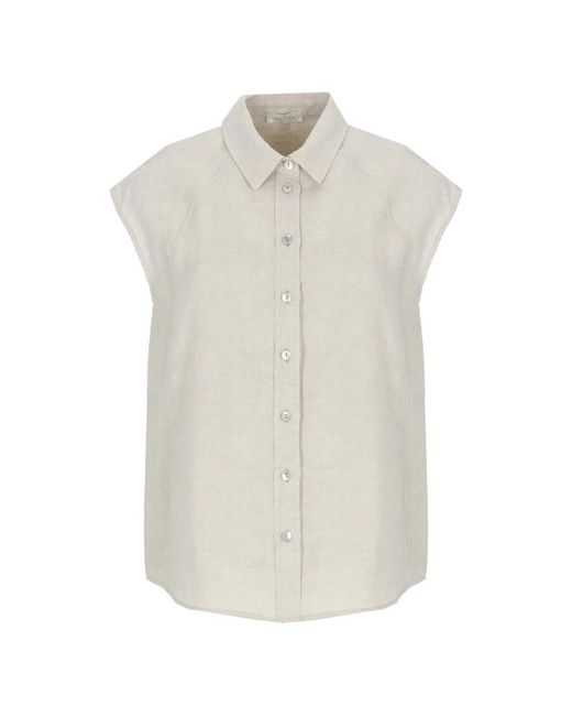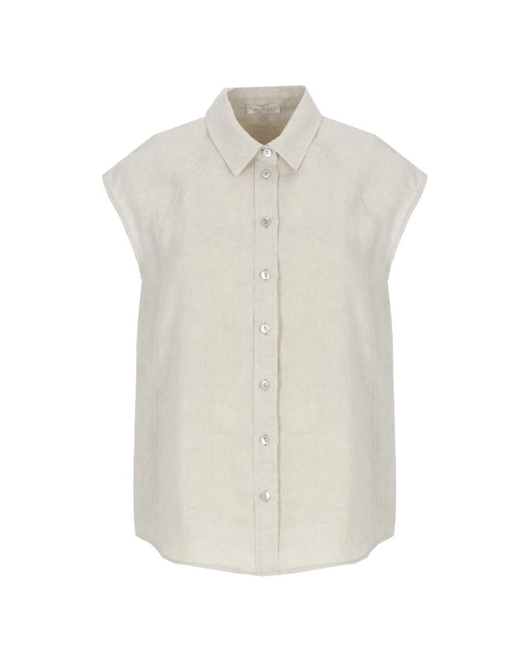 Panicale Linen Shirt is a sleeveless collared linen shirt with front button fastening, designed for warm-weather layering and relaxed ensembles. Key attributes: Beige | Ivory | Linen | Front buttons fastening | Collar | Sleeveless | Dimensions & fit: Model height 179 cm, wearing size 40 Colour: white