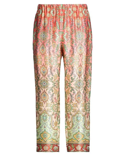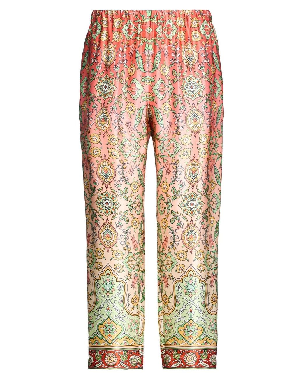 PANTAMOLLE. casual trousers, satin, floral-print, no appliqués, high waisted, elasticised waist, tapered leg, regular fit, unlined, slit pockets, dry clean, do not bleach, do not tumble dry. 100% Silk.