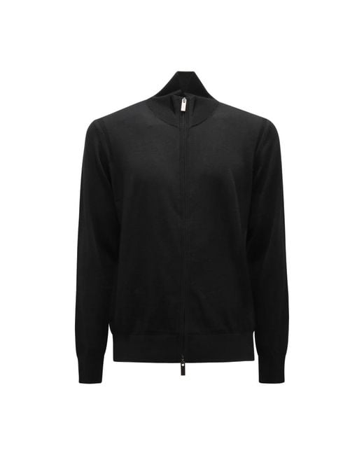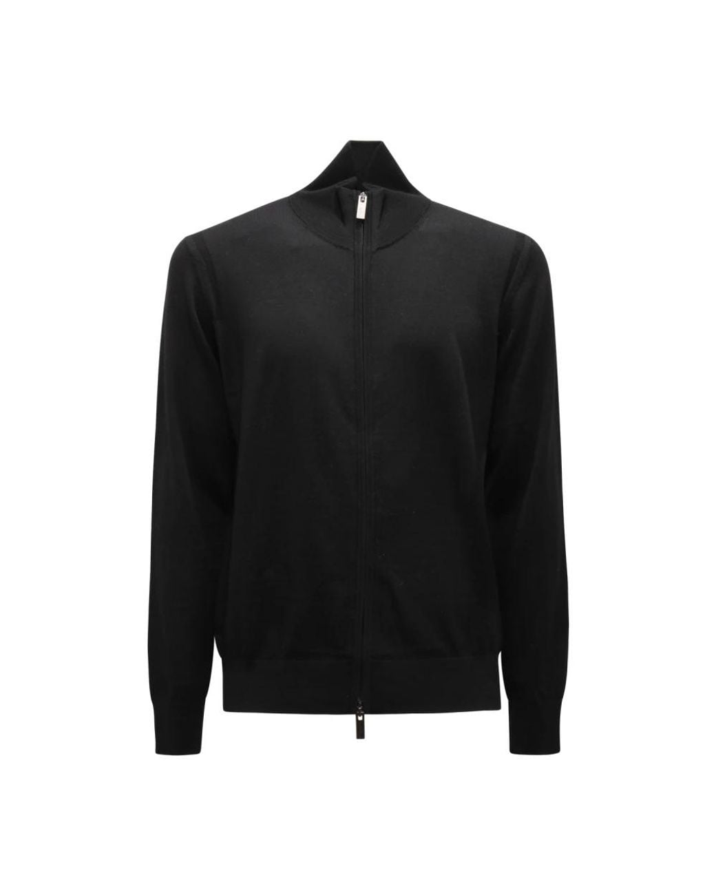 Paolo Pecora Cardigan Full-Zip is a refined zip-front knit designed for layering and everyday city wear. Its clean lines and practical closure make it a versatile wardrobe staple. Key attributes: Black | Nero | Wool | Soft handfeel | Warm insulating knit | Full-zip closure | Ribbed cuffs and hem | Slightly raised collar | Ribbed trims | Fine knit texture | Dimensions & fit: Fits true to size | Regular fit | Composition & care: 100% wool | Hand wash at 30°C or dry clean. Do not bleach. Do not tumble dry. Iron with a warm iron.